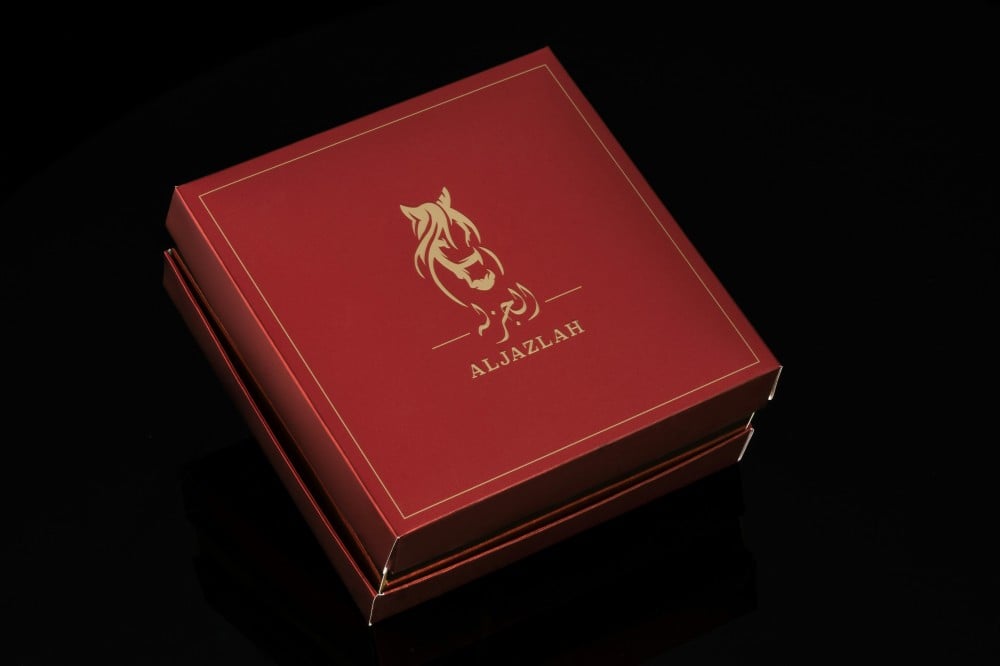 - مثبت عليها قطعة عود و اسم من إختيارك مكتوب بالإكليرك الذهبي