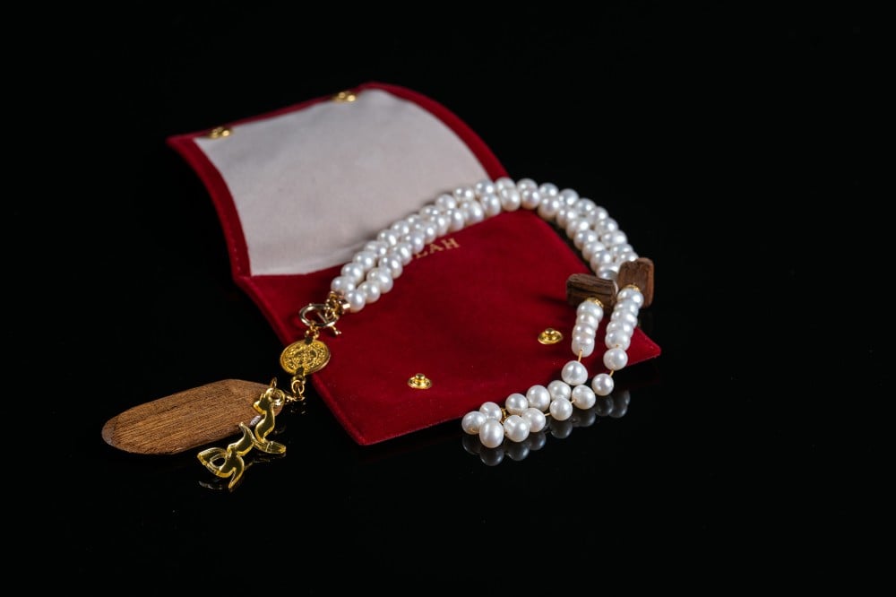 - يأتي مع سبحة اللؤلؤ الطبيعي قطعة عود مسقاه من دهن العود و اسم من إختيارك
